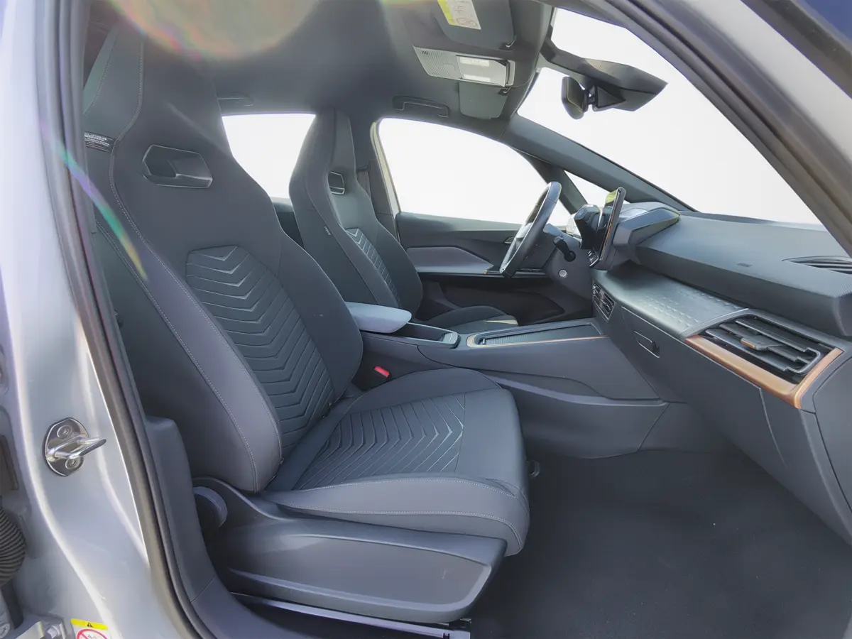Interior premium, com bancos desportivos em tecido reciclado SEAQUAL®, iluminação ambiente e acabamentos modernos