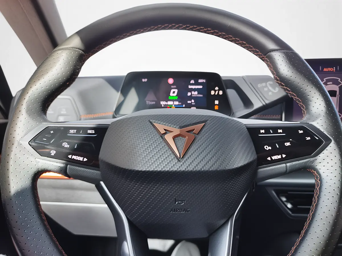 Design desportivo CUPRA, com detalhes em cobre, jantes exclusivas, luzes LED e uma silhueta marcante