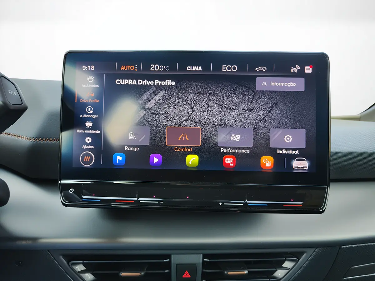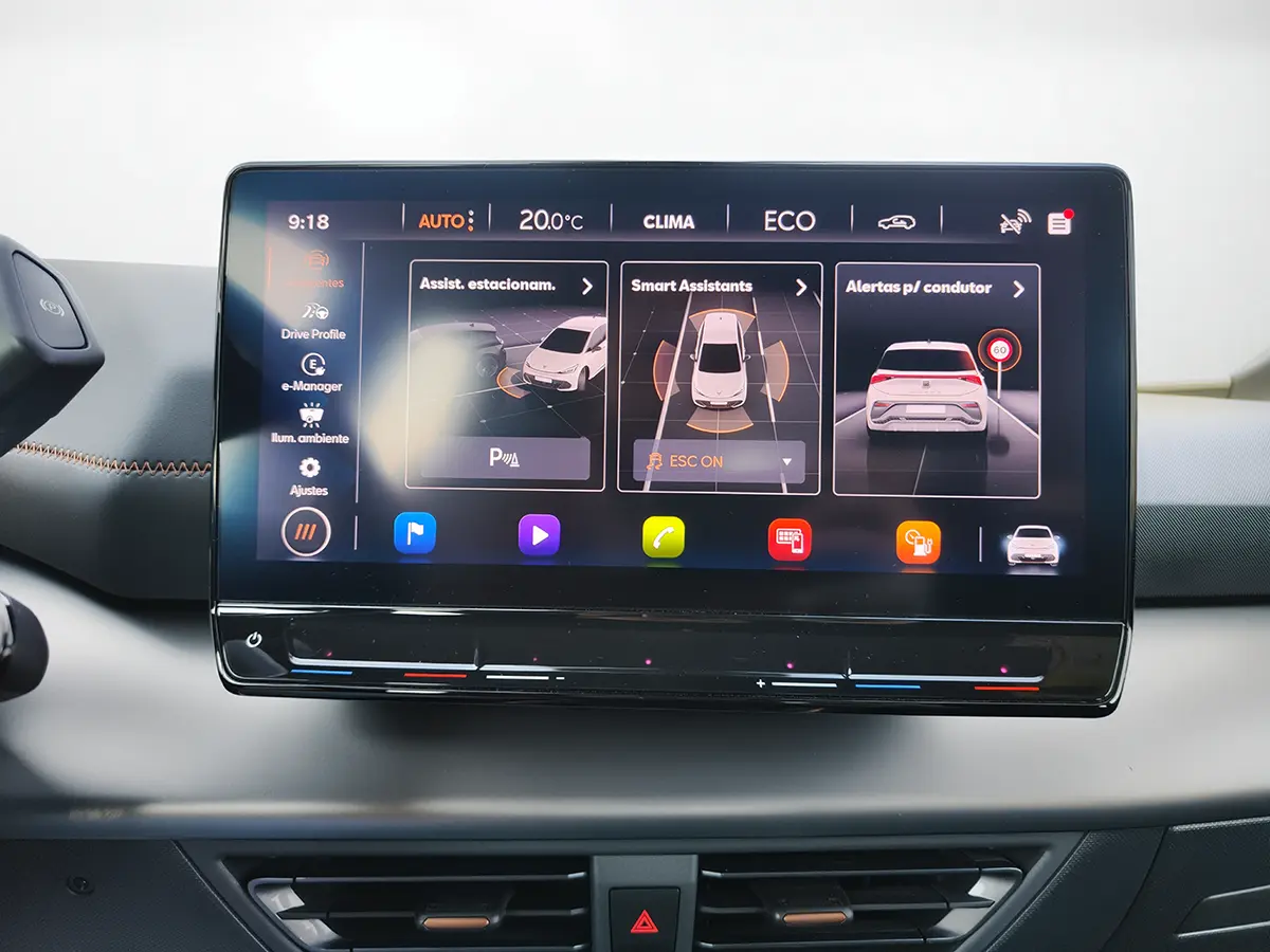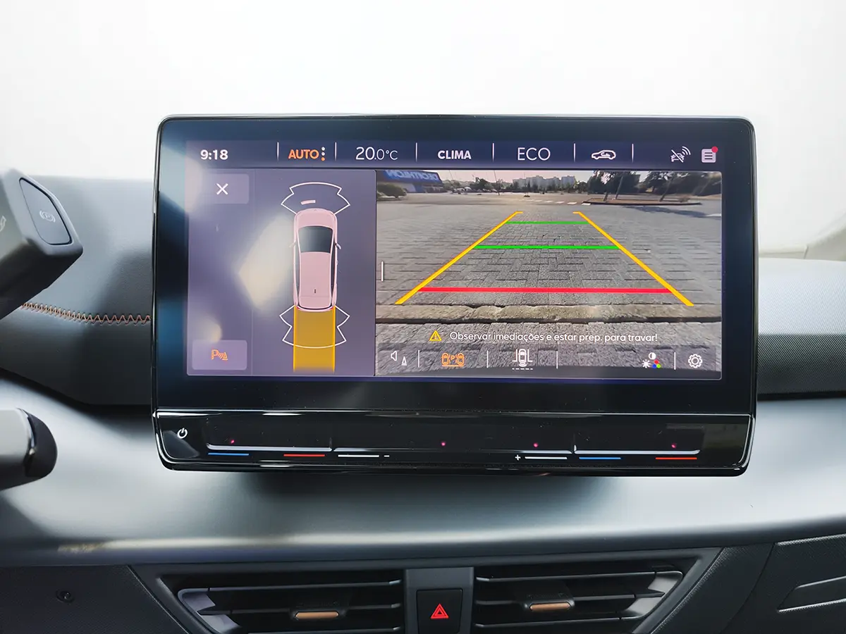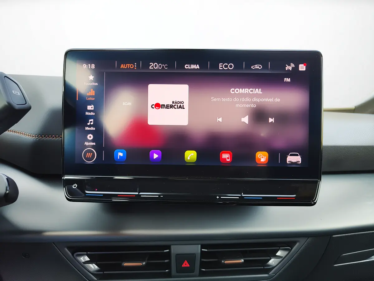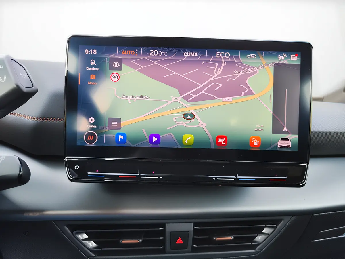 Tecnologia de ponta, com painel digital, ecrã central tátil de 12", Apple CarPlay, Android Auto e comandos por voz