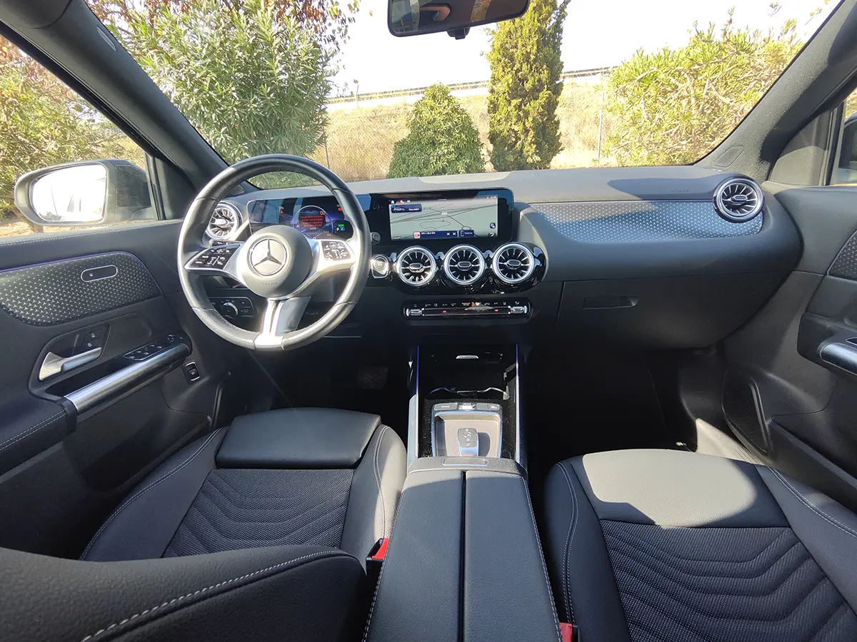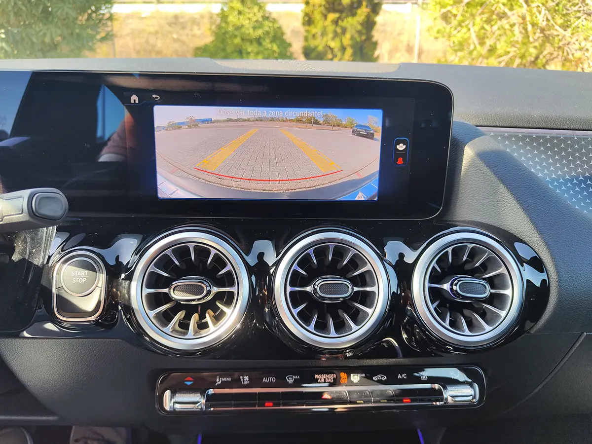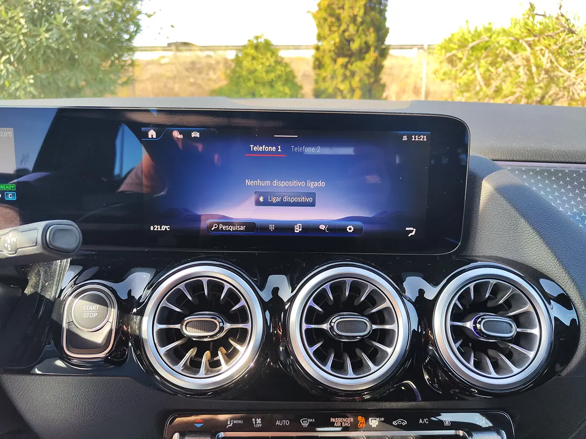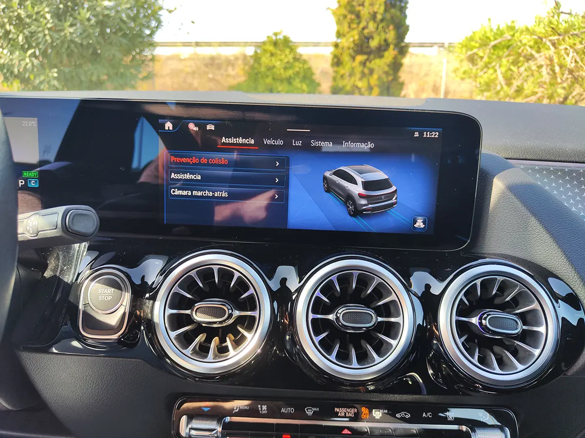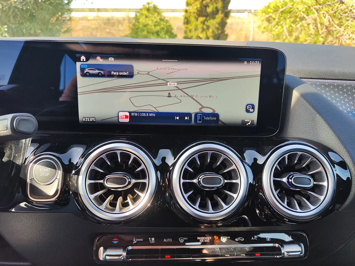 Interior sofisticado, com sistema MBUX, ecrãs digitais e conectividade intuitiva