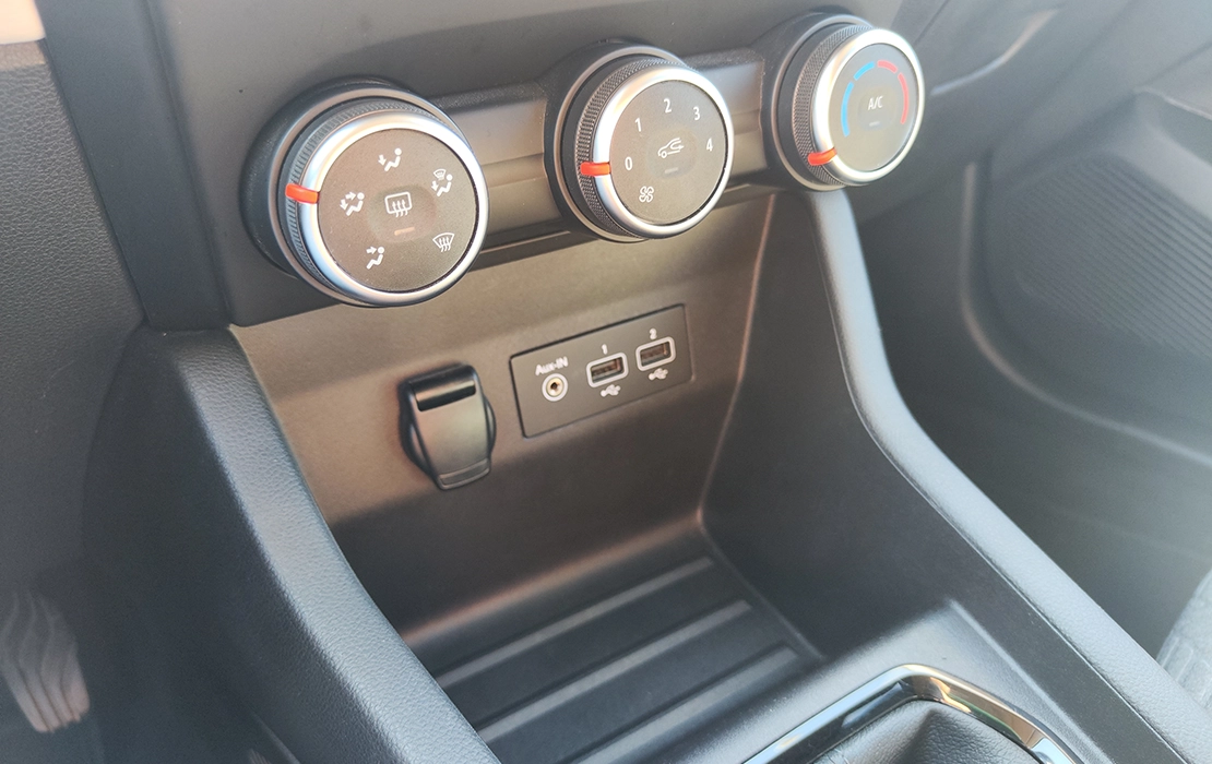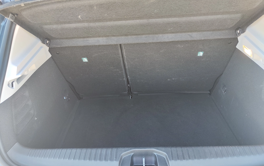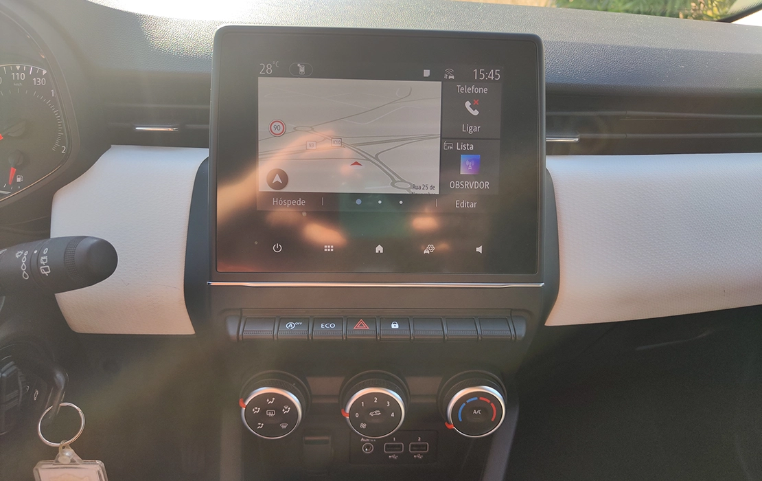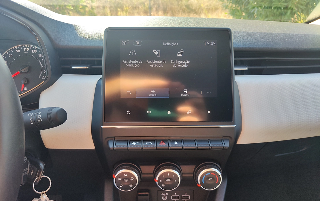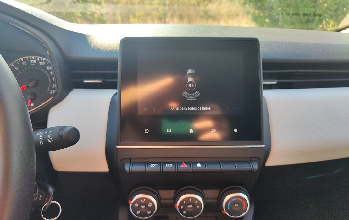 Interior confortável, com ar condicionado manual, ecrã tátil, sensores de estacionamento traseiros